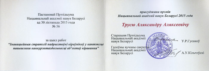 Диплом Лауреата Премии Национальной академии наук Беларуси